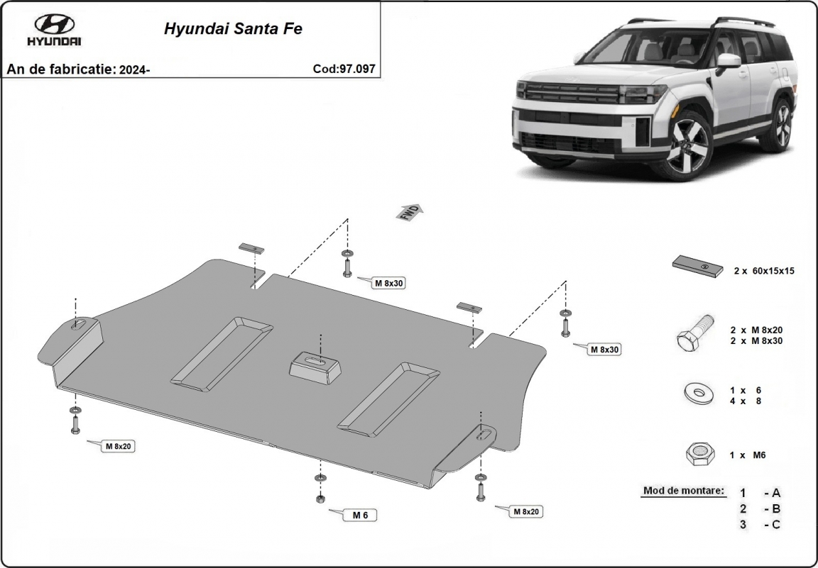 La piastra paramotore di Acciaio è nuova e si adatta perfettamente a tutte le versioni di Hyundai Santa Fe prodotte tra il 2024 e il 2026. É fatto di lamiera d'Acciaio di 2mm. Bulloni, dadi, rondelle e tutti gli accessori allegati Ogni piastra è resistente alla corrosione ed è ricoperto di vernice in polvere. Le piastre di protezione del motore sono attrezzati di coppie saldate per la miglior resistenza alle forze exteriori. |