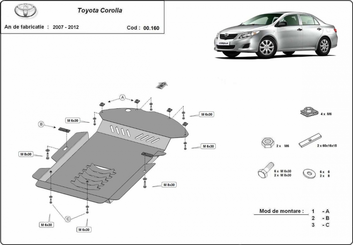 La piastra paramotore di Acciaio è nuova e si adatta perfettamente a tutte le versioni di Toyota Corolla prodotte tra il 2007 e il 2012. É fatto di lamiera d'Acciaio di 2mm. Bulloni, dadi, rondelle e tutti gli accessori allegati Ogni piastra è resistente alla corrosione ed è ricoperto di vernice in polvere. Le piastre di protezione del motore sono attrezzati di coppie saldate per la miglior resistenza alle forze exteriori. |