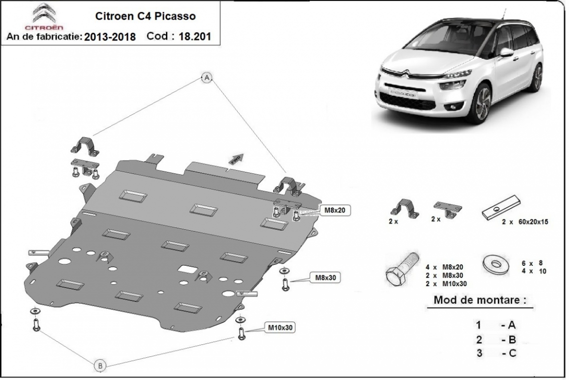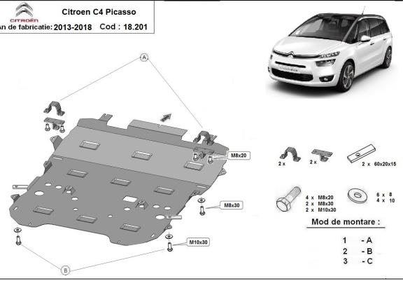 Piastra paramotore di acciaio Citroen C4 Picasso (2013-2018)