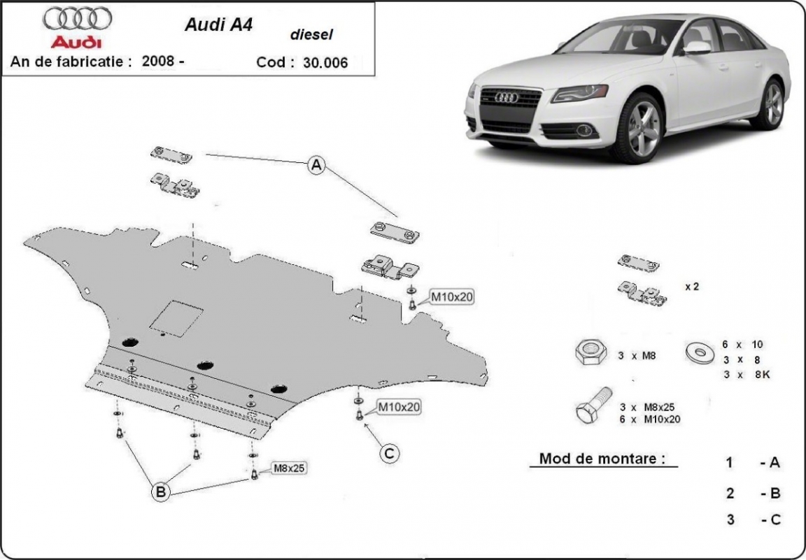 Piastra paramotore di acciaio Audi A4 B8 All Road, diesel (2008-2014)