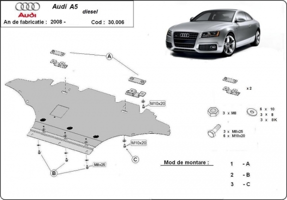 Piastra paramotore di acciaio Audi A5, diesel (2008-2016)