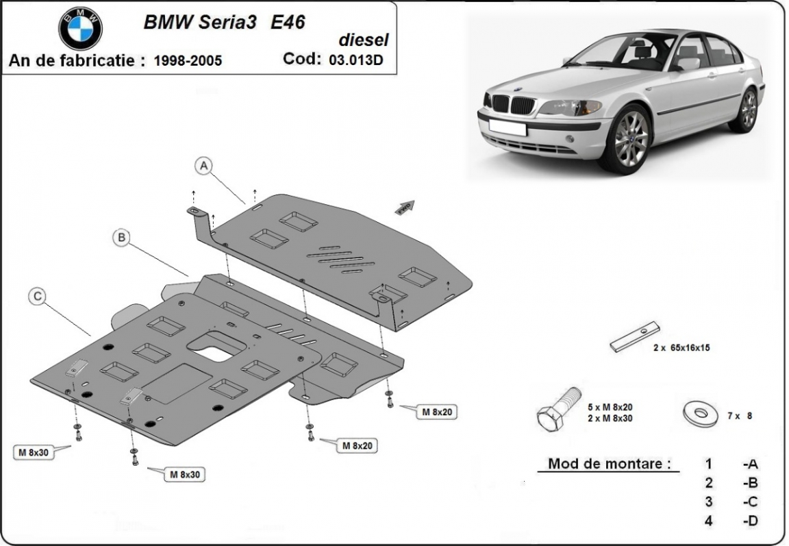 Piastra paramotore di acciaio BMW Seria 3 E46 - Diesel (1998-2005)