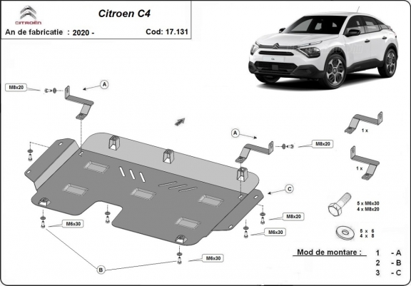 Piastra paramotore di acciaio Citroen C4 (2020-2026)