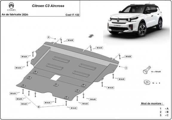 Piastra paramotore di acciaio Citroen C3 Aircross (2024-2026)