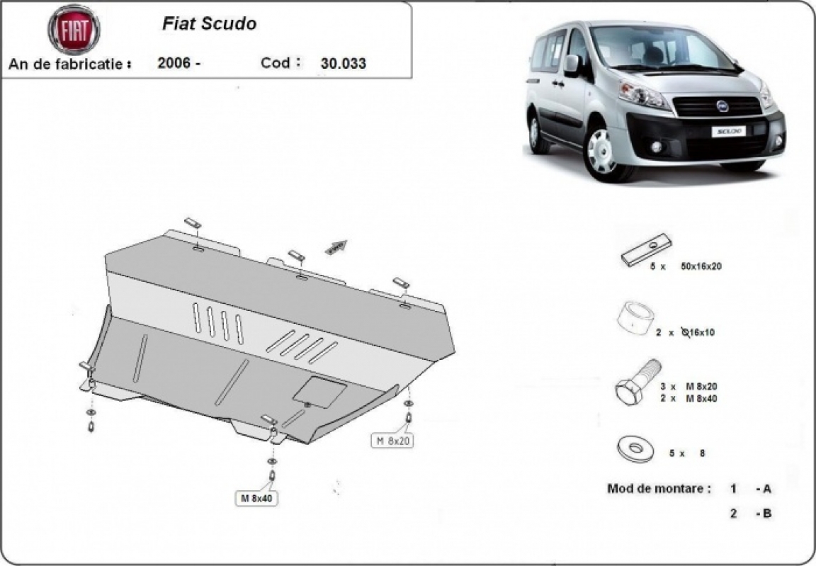 Piastra paramotore di acciaio Fiat Scudo (2006-2016)
