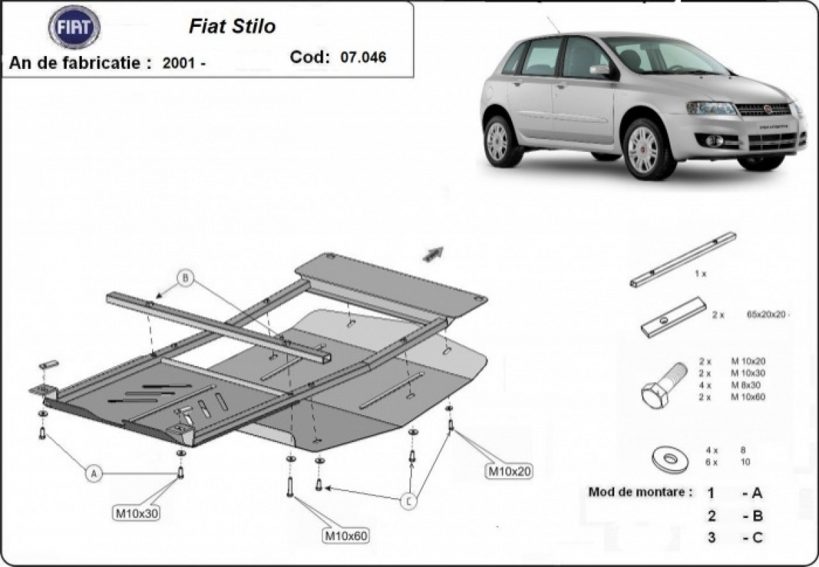 Piastra paramotore di acciaio Fiat Stilo (2001-2010)