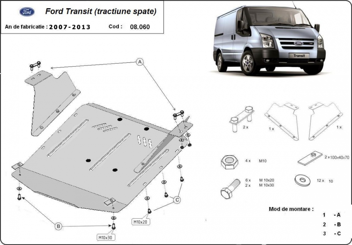 Piastra paramotore di acciaio Ford Transit - RWD (2007-2013)