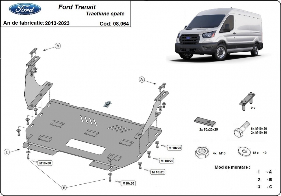 Piastra paramotore di acciaio Ford Transit - RWD (2013-2023)