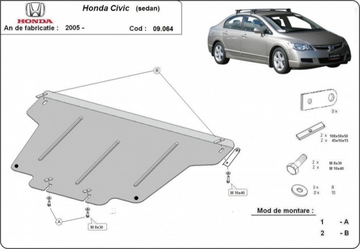 La piastra paramotore di Acciaio è nuova e si adatta perfettamente a tutte le versioni di Honda Civic (berlin) prodotte tra il 2005 e il 2015. É fatto di lamiera d'Acciaio di 2mm. Bulloni, dadi, rondelle e tutti gli accessori allegati Ogni piastra è resistente alla corrosione ed è ricoperto di vernice in polvere. Le piastre di protezione del motore sono attrezzati di coppie saldate per la miglior resistenza alle forze exteriori. |