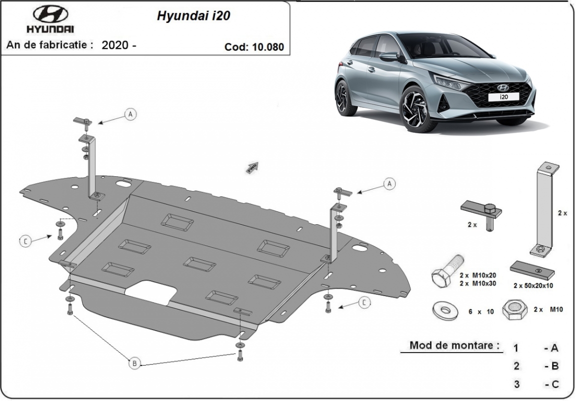 Piastra paramotore di acciaio Hyundai i20 (2020-2026)