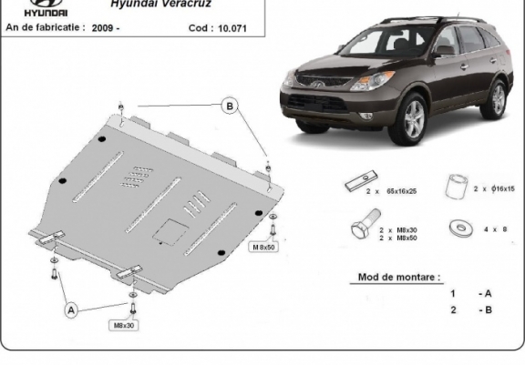 Piastra paramotore di acciaio Hyundai Veracruz (2009-2015)