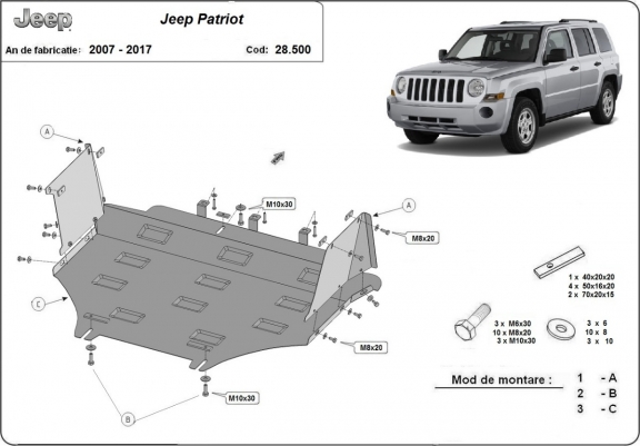 Piastra paramotore di acciaio Jeep Patriot