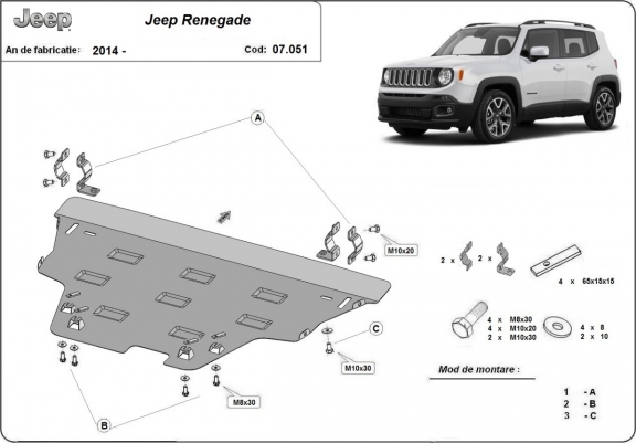 La piastra paramotore di Acciaio è nuova e si adatta perfettamente a tutte le versioni di Jeep Renegade prodotte tra il 2014 e il 2026. É fatto di lamiera d'Acciaio di 2mm. Bulloni, dadi, rondelle e tutti gli accessori allegati Ogni piastra è resistente alla corrosione ed è ricoperto di vernice in polvere. Le piastre di protezione del motore sono attrezzati di coppie saldate per la miglior resistenza alle forze exteriori. |