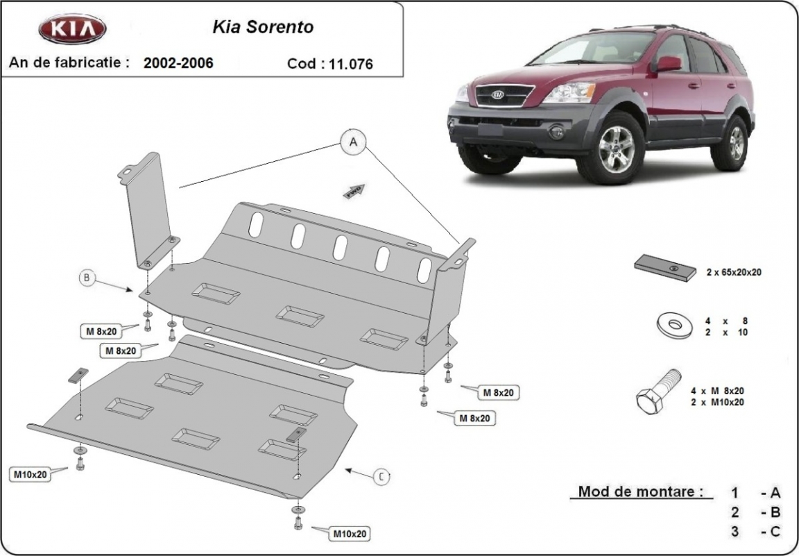 Piastra paramotore di acciaio Kia Sorento (2002-2006)
