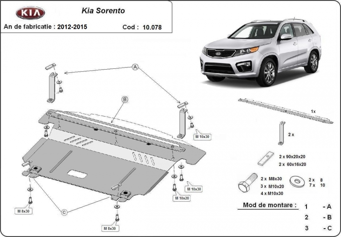 La piastra paramotore di Acciaio è nuova e si adatta perfettamente a tutte le versioni di Kia Sorento prodotte tra il 2012 e il 2014. É fatto di lamiera d'Acciaio di 2mm. Bulloni, dadi, rondelle e tutti gli accessori allegati Ogni piastra è resistente alla corrosione ed è ricoperto di vernice in polvere. Le piastre di protezione del motore sono attrezzati di coppie saldate per la miglior resistenza alle forze exteriori. |