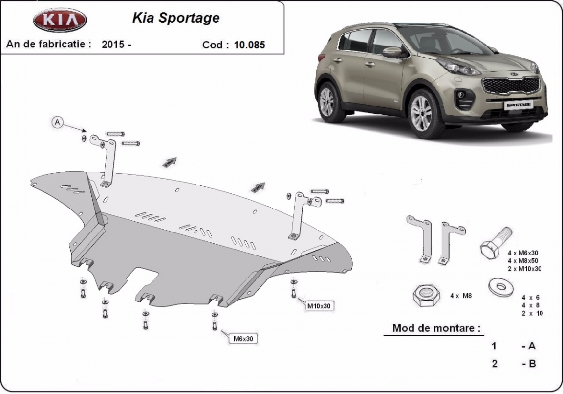 La piastra paramotore di Acciaio è nuova e si adatta perfettamente a tutte le versioni di Kia Sportage prodotte tra il 2015 e il 2019. É fatto di lamiera d'Acciaio di 2mm. Bulloni, dadi, rondelle e tutti gli accessori allegati Ogni piastra è resistente alla corrosione ed è ricoperto di vernice in polvere. Le piastre di protezione del motore sono attrezzati di coppie saldate per la miglior resistenza alle forze exteriori. |