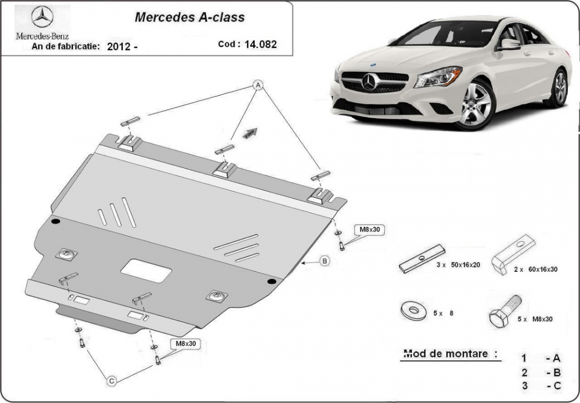 Piastra paramotore di acciaio Mercedes A-Class W176 (2012-2019)