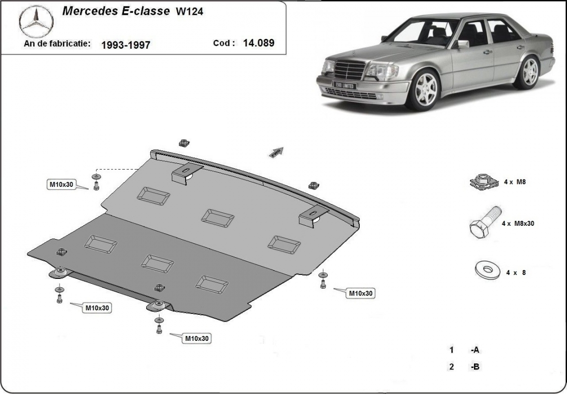 Piastra paramotore di acciaio Mercedes E-Classe W124 (1993-1997)