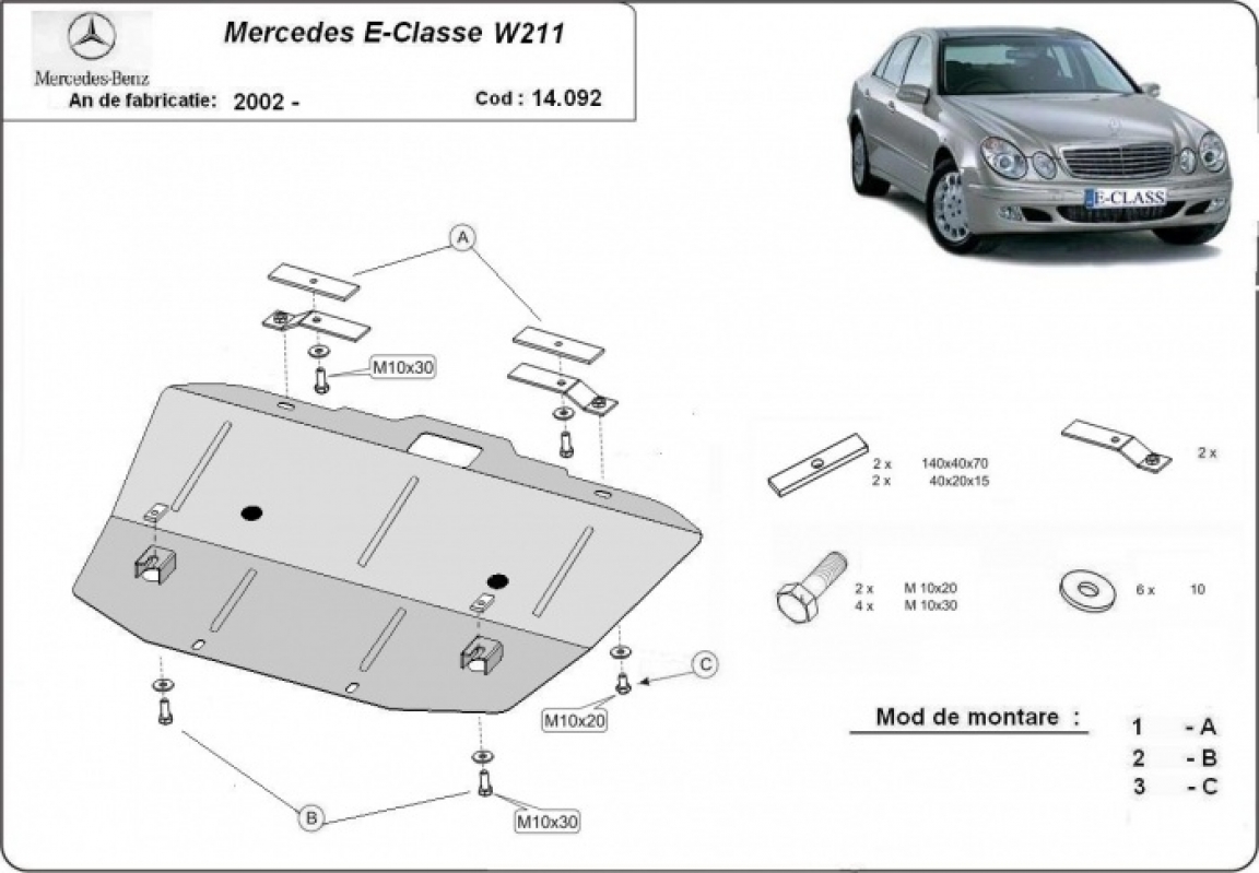 Piastra paramotore di acciaio Mercedes E-Classe W211 (2002-2008)
