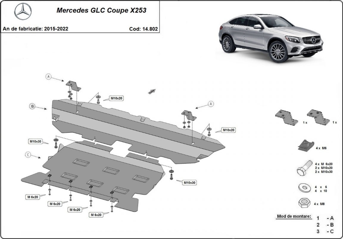 Piastra paramotore di acciaio Mercedes GLC Coupe X253 (2015-2022)