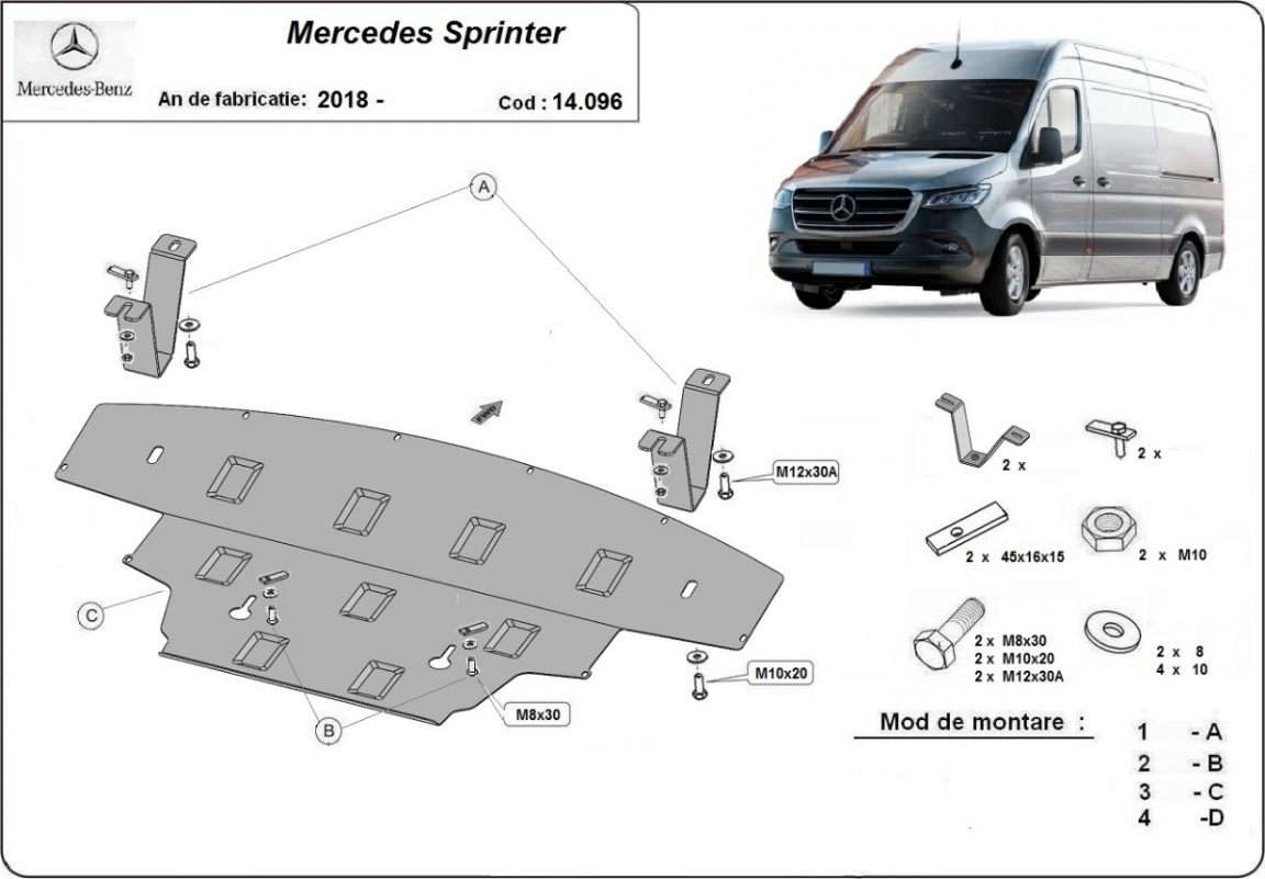 La piastra paramotore di Acciaio è nuova e si adatta perfettamente a tutte le versioni di Mercedes Sprinter prodotte tra il 2018 e il 2026. É fatto di lamiera d'Acciaio di 2mm. Bulloni, dadi, rondelle e tutti gli accessori allegati Ogni piastra è resistente alla corrosione ed è ricoperto di vernice in polvere. Le piastre di protezione del motore sono attrezzati di coppie saldate per la miglior resistenza alle forze exteriori. |