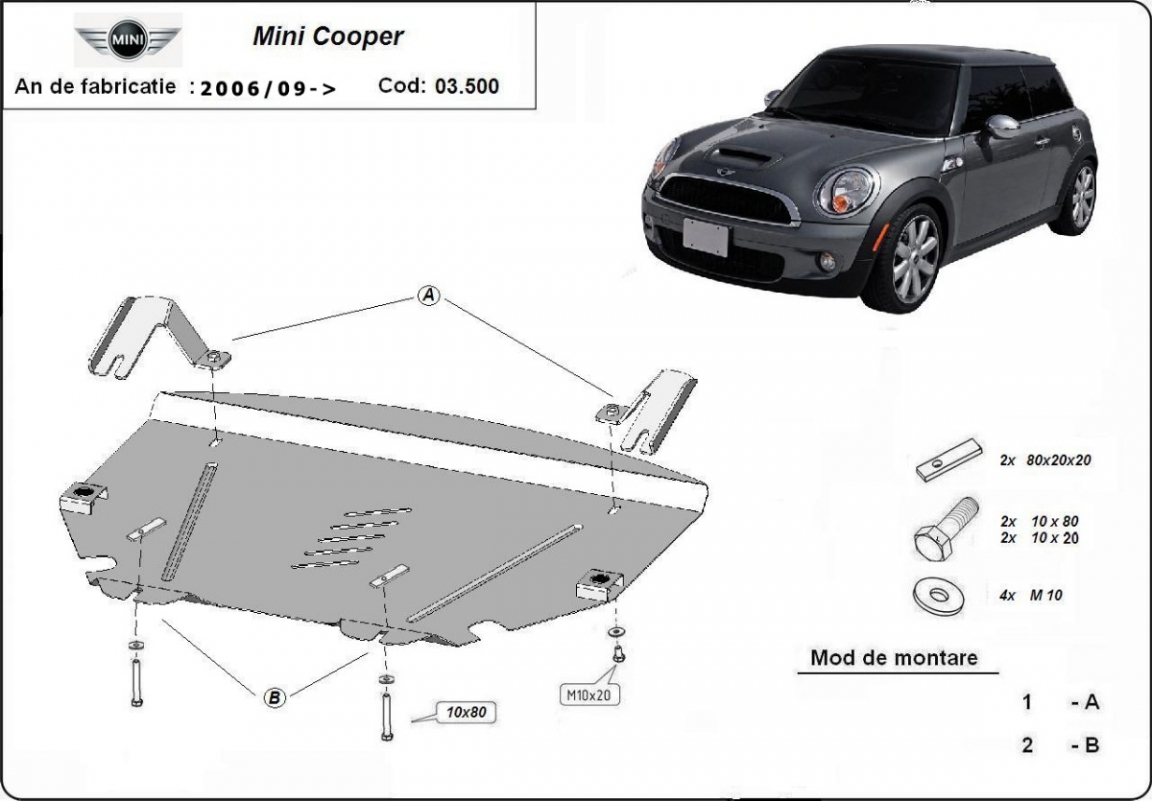Piastra paramotore di acciaio Mini Cooper R56 (2006-2014)