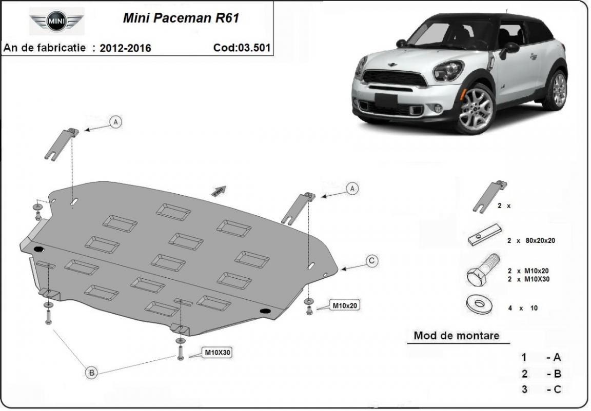 Piastra paramotore di acciaio Mini Paceman R61 (2012-2016)