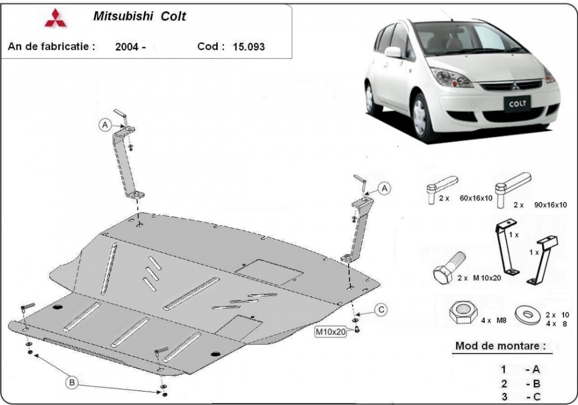 Piastra paramotore di acciaio Mitsubishi Colt (2002-2013)
