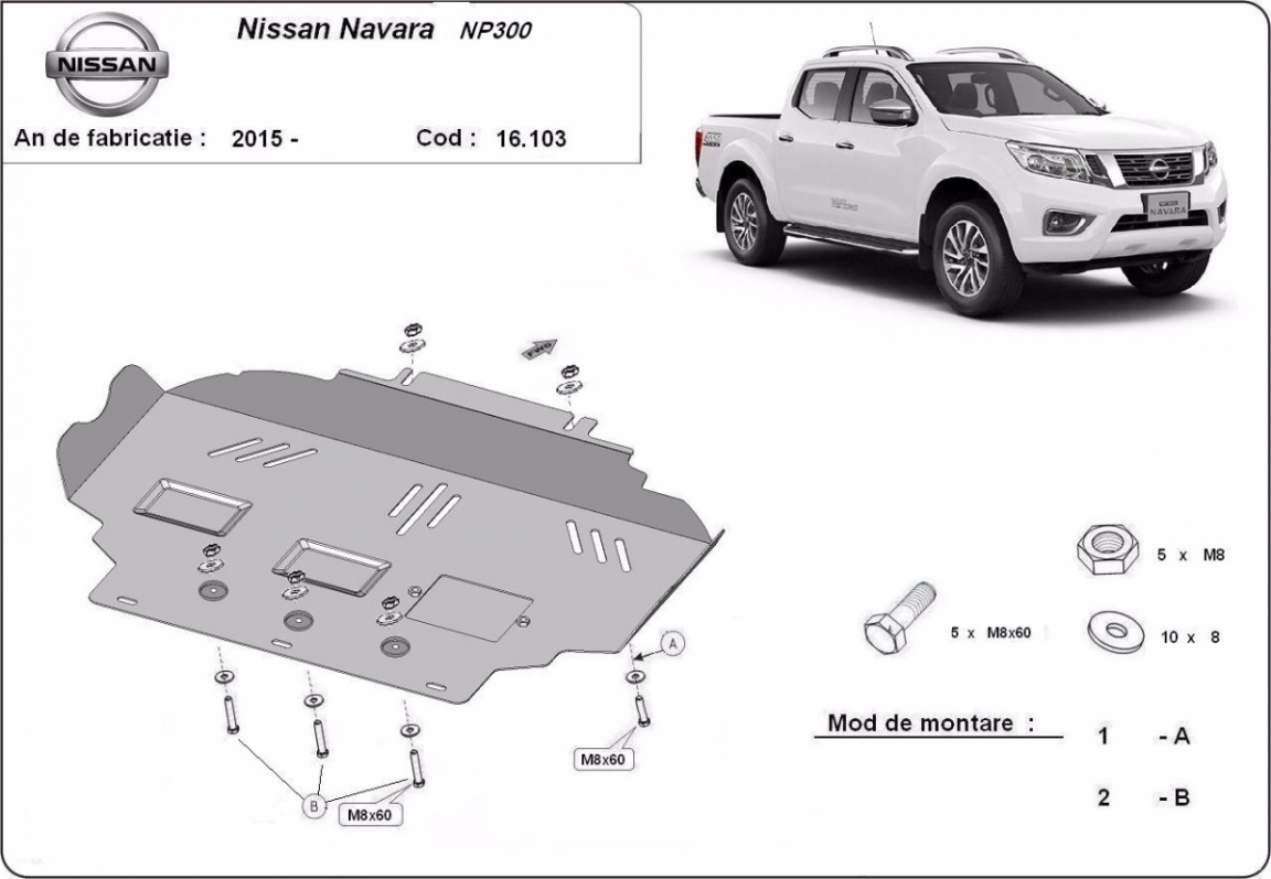 Piastra paramotore di acciaio Nissan Navara NP300 - D23