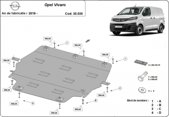 La piastra paramotore di Acciaio è nuova e si adatta perfettamente a tutte le versioni di Opel Vivaro prodotte tra il 2019 e il 2026. É fatto di lamiera d'Acciaio di 2mm. Bulloni, dadi, rondelle e tutti gli accessori allegati Ogni piastra è resistente alla corrosione ed è ricoperto di vernice in polvere. Le piastre di protezione del motore sono attrezzati di coppie saldate per la miglior resistenza alle forze exteriori. |