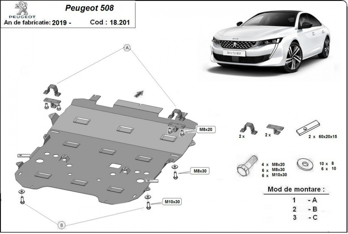 Piastra paramotore di acciaio Peugeot 508 (2018-2026)
