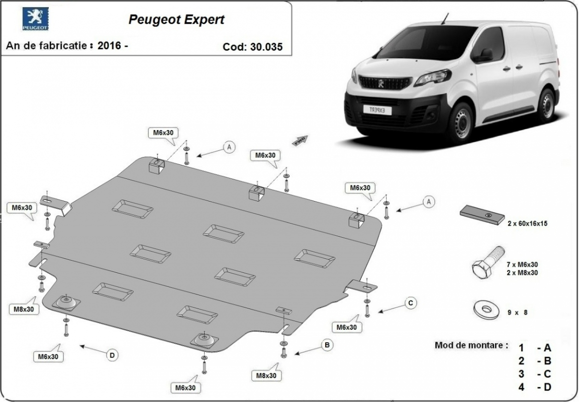 La piastra paramotore di Acciaio è nuova e si adatta perfettamente a tutte le versioni di Peugeot Expert prodotte tra il 2016 e il 2026. É fatto di lamiera d'Acciaio di 2mm. Bulloni, dadi, rondelle e tutti gli accessori allegati Ogni piastra è resistente alla corrosione ed è ricoperto di vernice in polvere. Le piastre di protezione del motore sono attrezzati di coppie saldate per la miglior resistenza alle forze exteriori. |