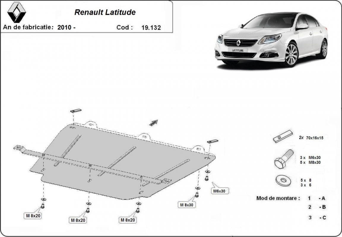 Piastra paramotore di acciaio Renault Latitude (2010-2015)