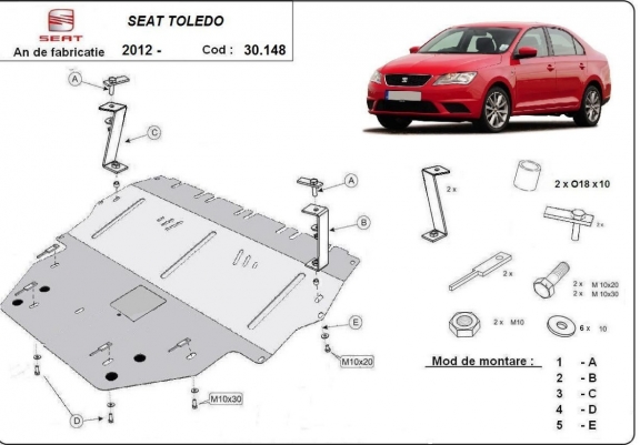 Piastra paramotore di acciaio Seat Toledo 4 (2012-2019)