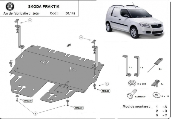 Piastra paramotore di acciaio Skoda Praktik (2006-2015)