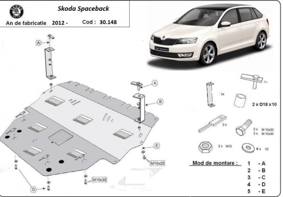 Piastra paramotore di acciaio Skoda Spaceback (2013-2019)