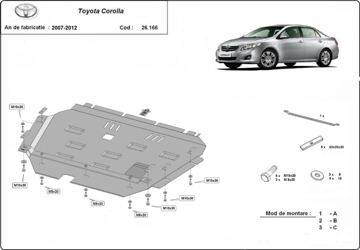 Piastra paramotore di acciaio Toyota Corolla (2007-2012)