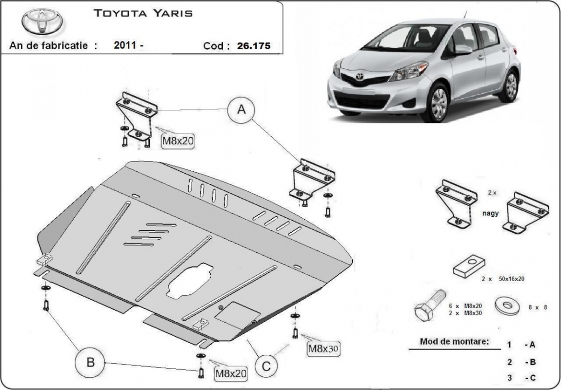 Piastra paramotore di acciaio Toyota Yaris