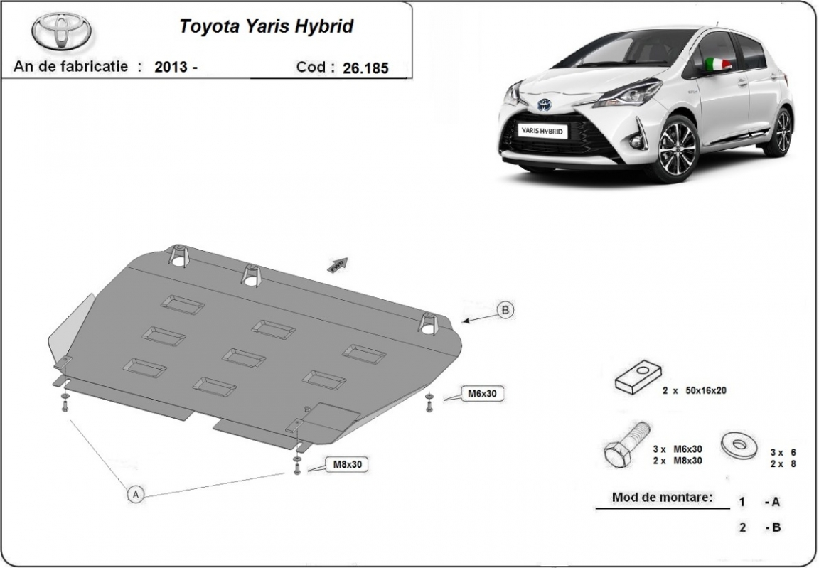La piastra paramotore di Acciaio è nuova e si adatta perfettamente alla Toyota Yaris Hybrid, con le seguenti versioni motore / trazione: XP150, all, Hybrid - prodotte tra il 2013 e il 2021. É fatto di lamiera d'Acciaio di 2mm. Bulloni, dadi, rondelle e tutti gli accessori allegati Ogni piastra è resistente alla corrosione ed è ricoperto di vernice in polvere. Le piastre di protezione del motore sono attrezzati di coppie saldate per la miglior resistenza alle forze exteriori. |