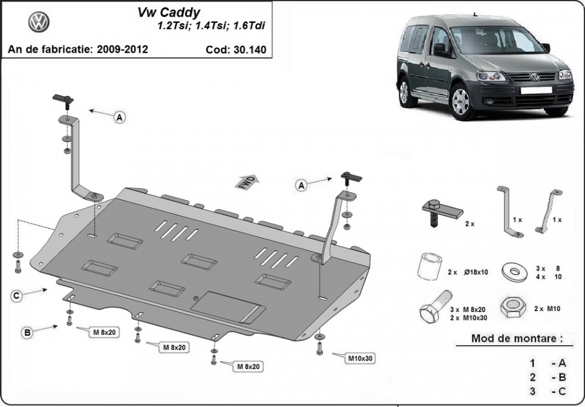 Piastra paramotore di acciaio Volkswagen Caddy (2010-2012)