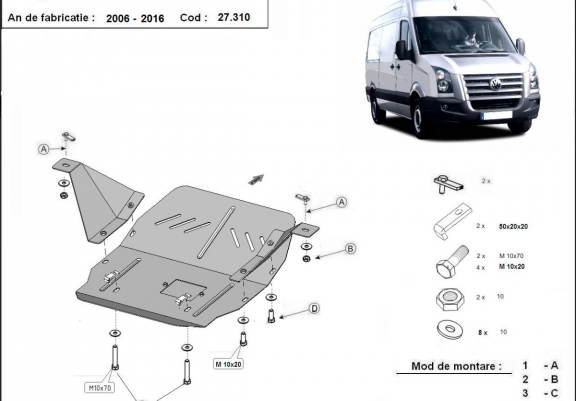 Piastra paramotore di acciaio Volkswagen Crafter (2006-2016)