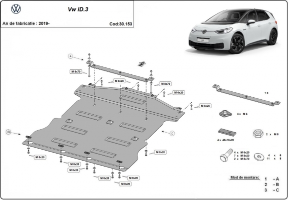 Piastra paramotore di acciaio Volkswagen ID 3 (2019-2026)