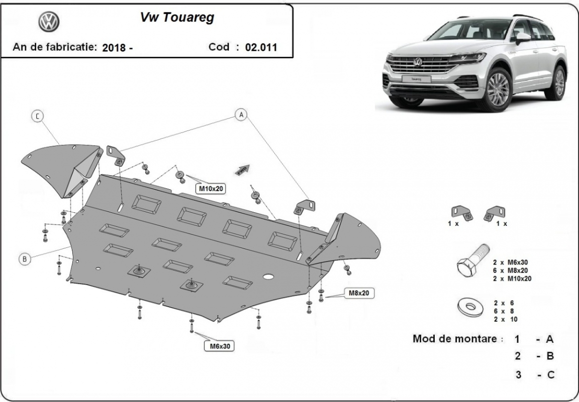 La piastra paramotore di Acciaio è nuova e si adatta perfettamente a tutte le versioni di Volkswagen Touareg prodotte tra il 2018 e il 2026. É fatto di lamiera d'Acciaio di 2mm. Bulloni, dadi, rondelle e tutti gli accessori allegati Ogni piastra è resistente alla corrosione ed è ricoperto di vernice in polvere. Le piastre di protezione del motore sono attrezzati di coppie saldate per la miglior resistenza alle forze exteriori. |