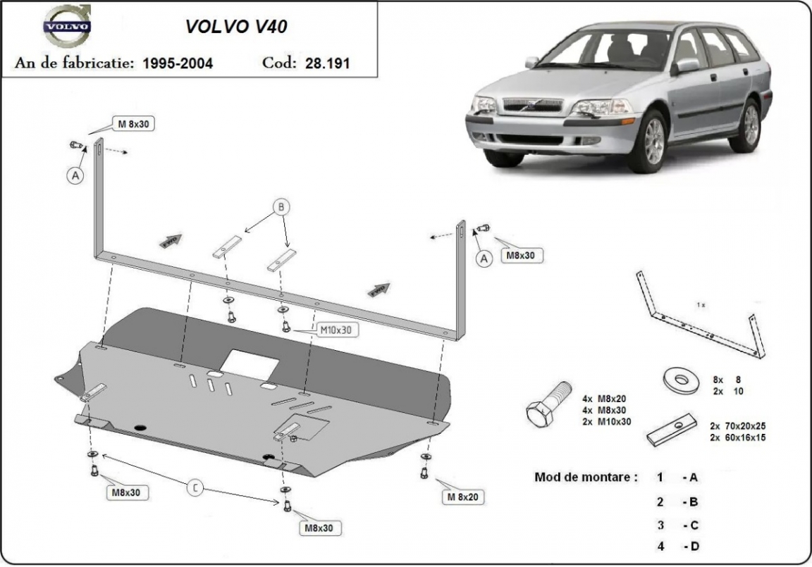 Piastra paramotore di acciaio Volvo V40 (1995-2004)