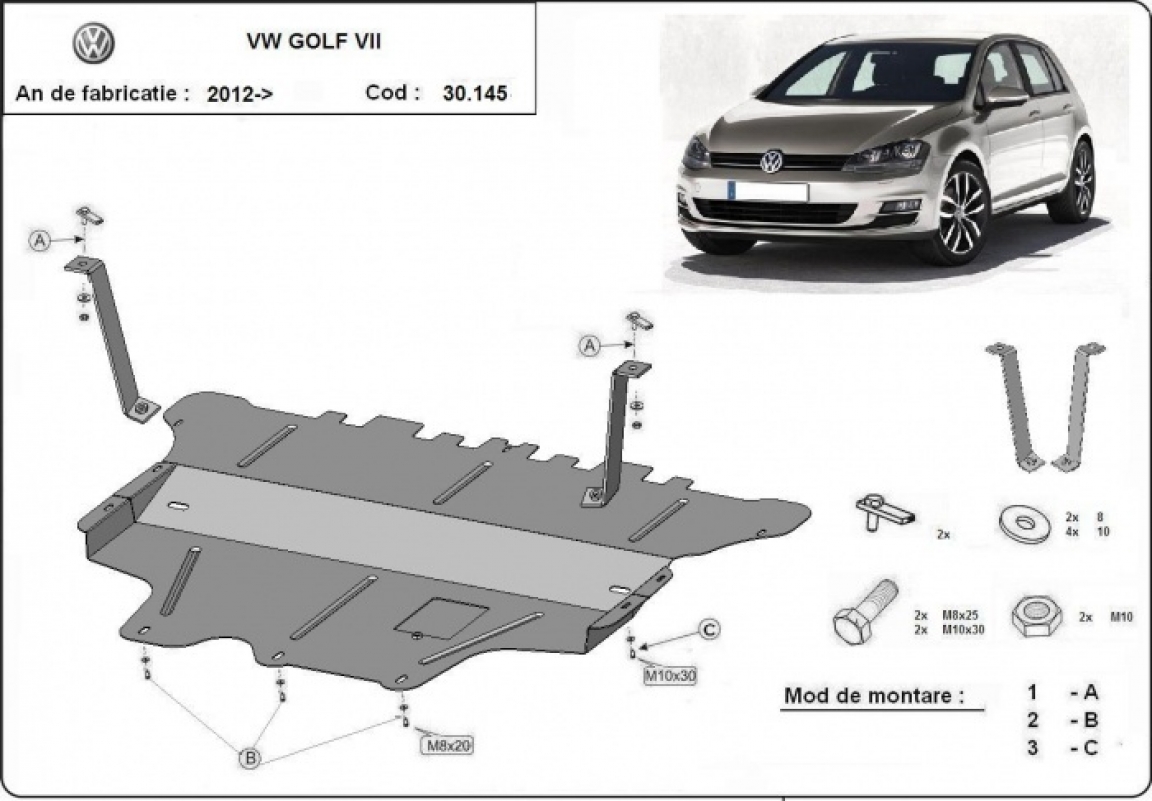 Piastra paramotore di acciaio VW Golf 7 - cambio manuale