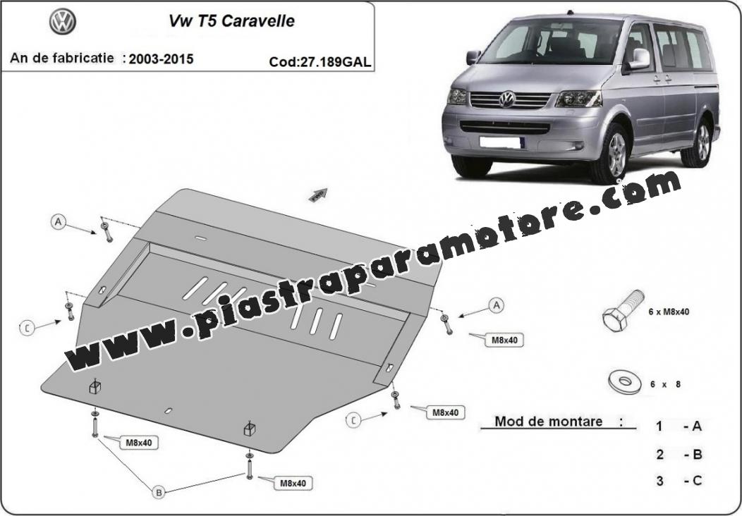Piastra paramotore di acciaio zincato Volkswagen Transporter T5 Caravelle (2003-2015)