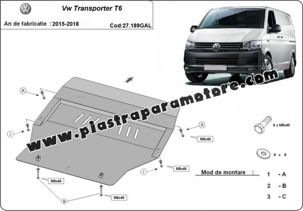 Piastra paramotore di acciaio zincato Volkswagen Transporter T6 (2015-2018)