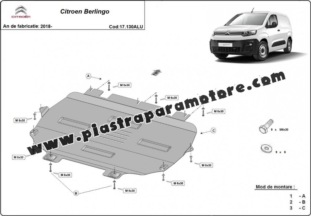 Piastra paramotore di Alluminio Citroen Berlingo (2018-2026)