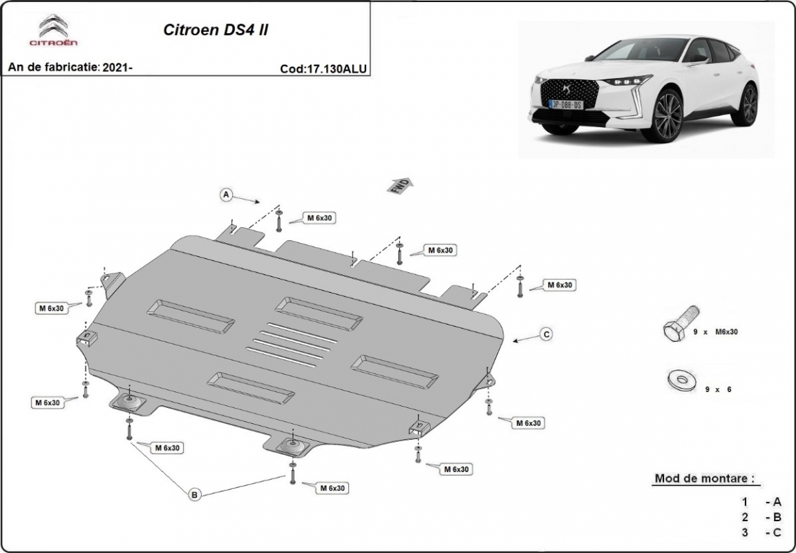 Piastra paramotore di Alluminio Citroen DS4 II (2021-2026)