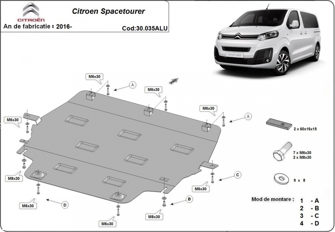 La piastra paramotore di Alluminio è nuova e si adatta perfettamente a tutte le versioni di Citroen Spacetourer prodotte tra il 2016 e il 2026. É fatto di lamiera d'Alluminio di 3mm. Gli scudi sono in alluminio, ma i supporti di fissaggio sono in acciaio. Bulloni, dadi, rondelle e tutti gli accessori allegati Ogni piastra è resistente alla corrosione ed è ricoperto di vernice in polvere. Le piastre di protezione del motore sono attrezzati di coppie saldate per la miglior resistenza alle forze exteriori. |